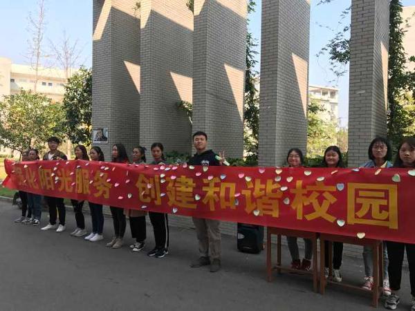2017年11月2日中午,为进一步推进教育阳光服务工作,学校组织青年志愿者,在食堂门口通过现场宣讲、学生现场咨询等形式对我校教育阳光服务平台进行了宣传。